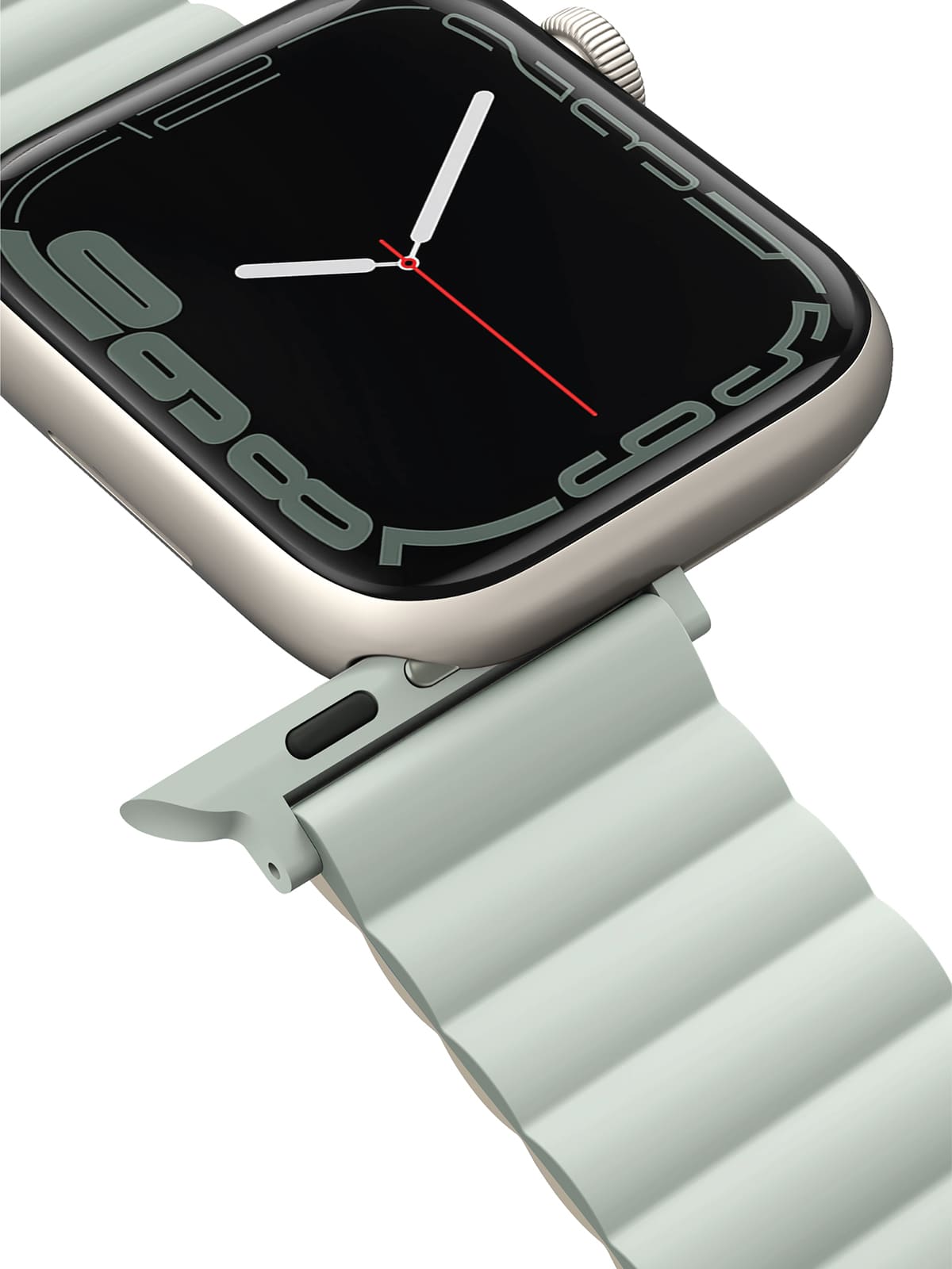 Двусторонний силиконовый ремешок для Apple Watch с магнитной застежкой приятен на ощупь, не вызывает раздражения во время эксплуатации, а также не боится загрязнений и влаги. Возможность регулировки длины обеспечивает точное соответствие размерам руки и надежно фиксирует устройство на запястье, позволяя не беспокоиться об утере даже на занятиях спортом.